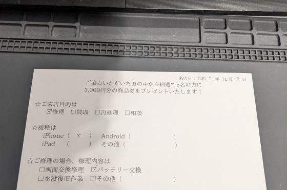 iPhone8のバッテリー交換のお客様よりコメントを頂きました