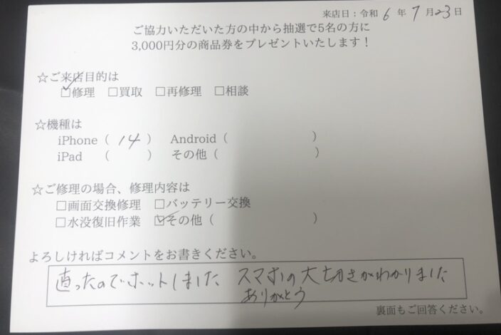 メーカー等で修理ができないと言われた端末の修理実績も多数ございます。ご相談はもちろん無料ですので、店舗までお気軽にご連絡ください。