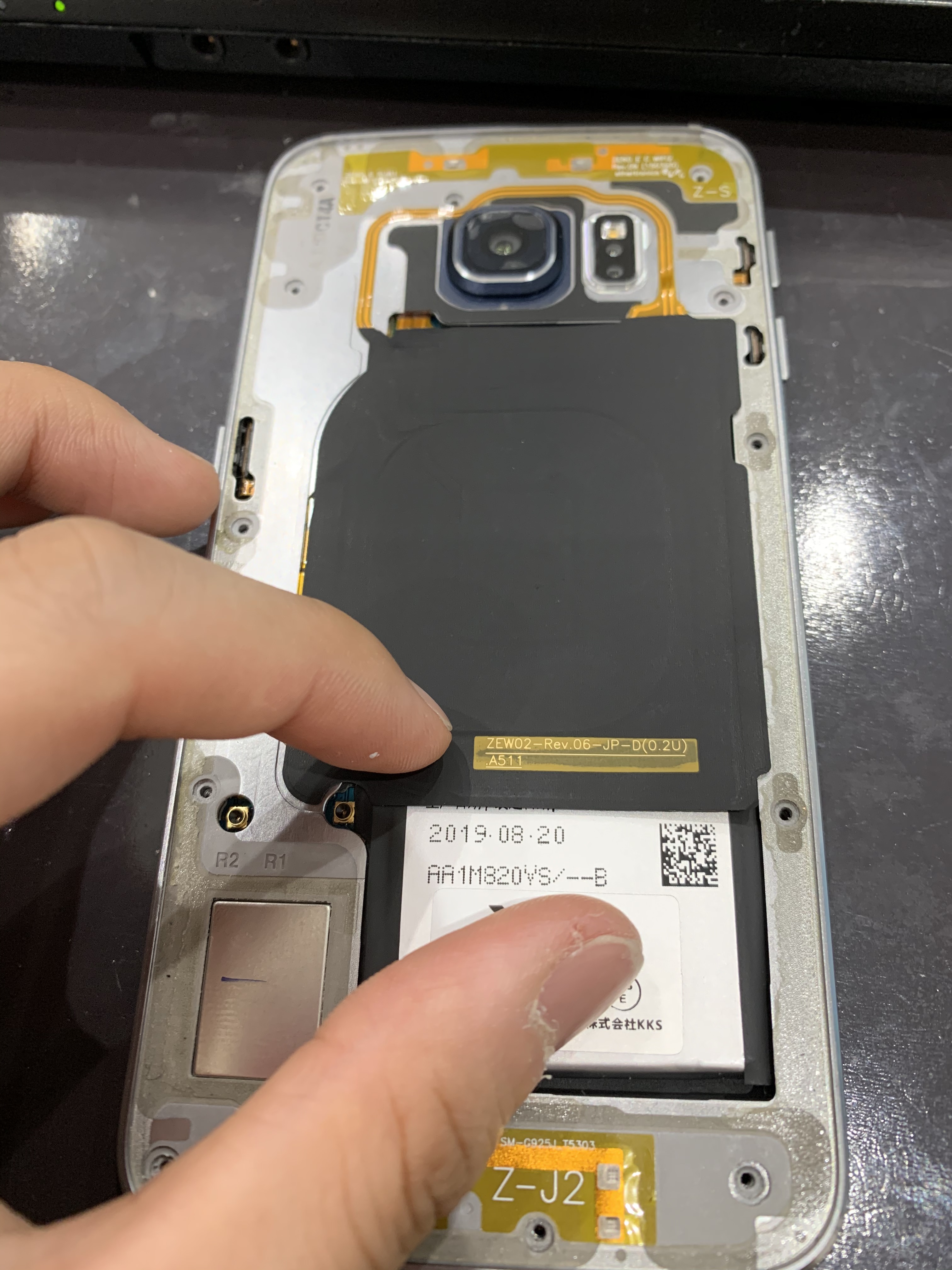 湾曲ディスプレイ(エッジ)が特徴のこちらの端末ですが、異常に背面が盛り上がっていて、なんと背面パネルが取れている状態でのお持ち込みでした。