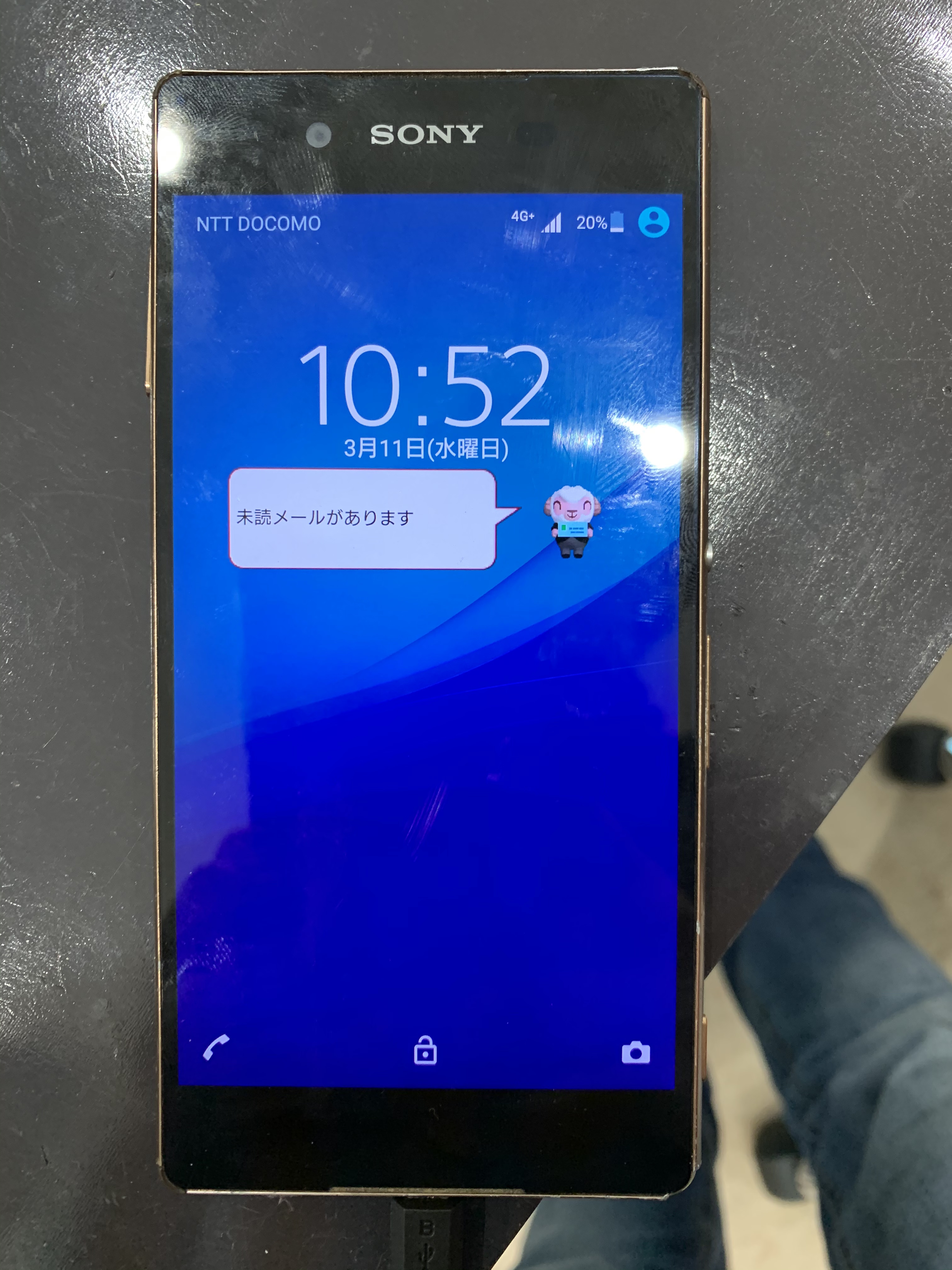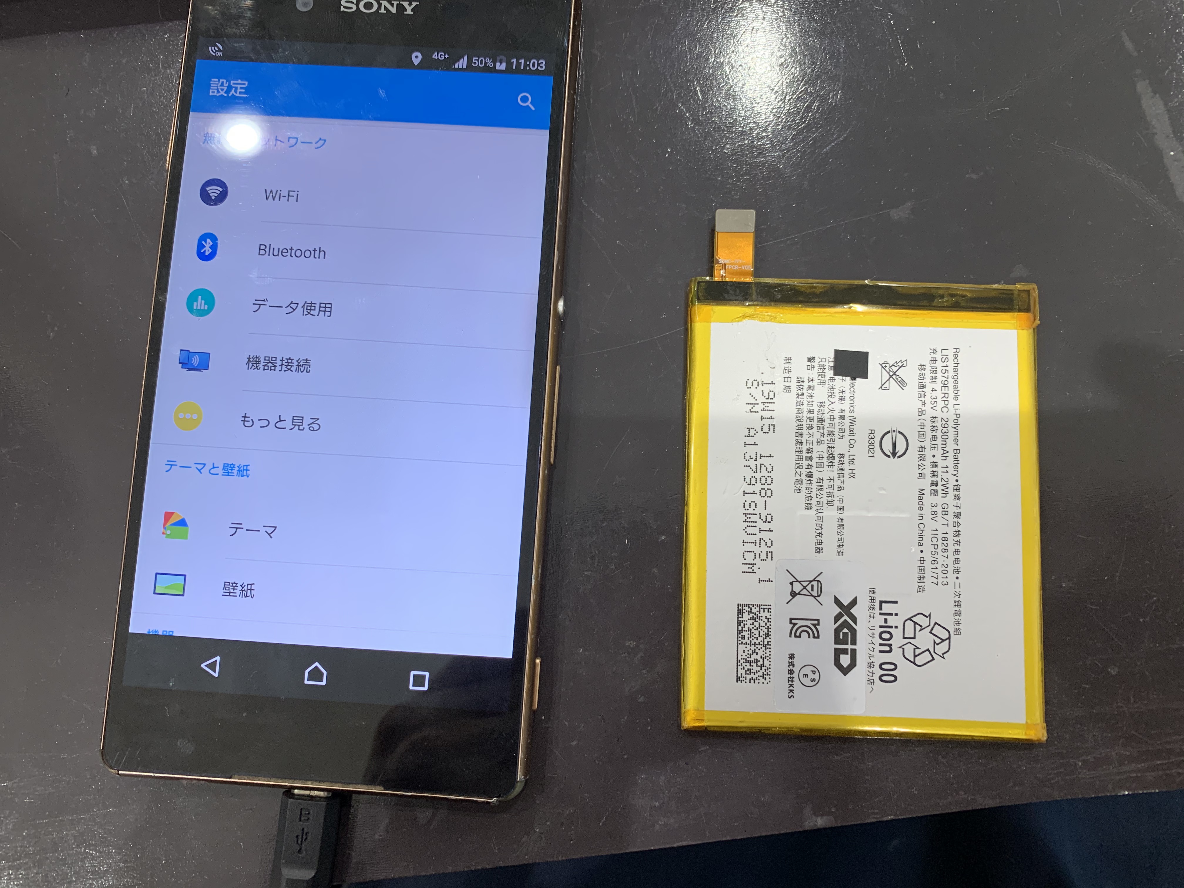 試しに、Xperiaへ充電ケーブルを差し込んでみます。