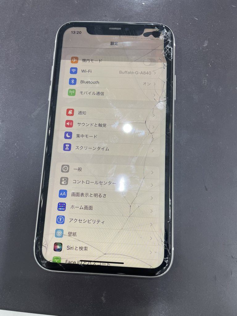 下のようなiPhone11Proの画面も画面交換で直すことができます。