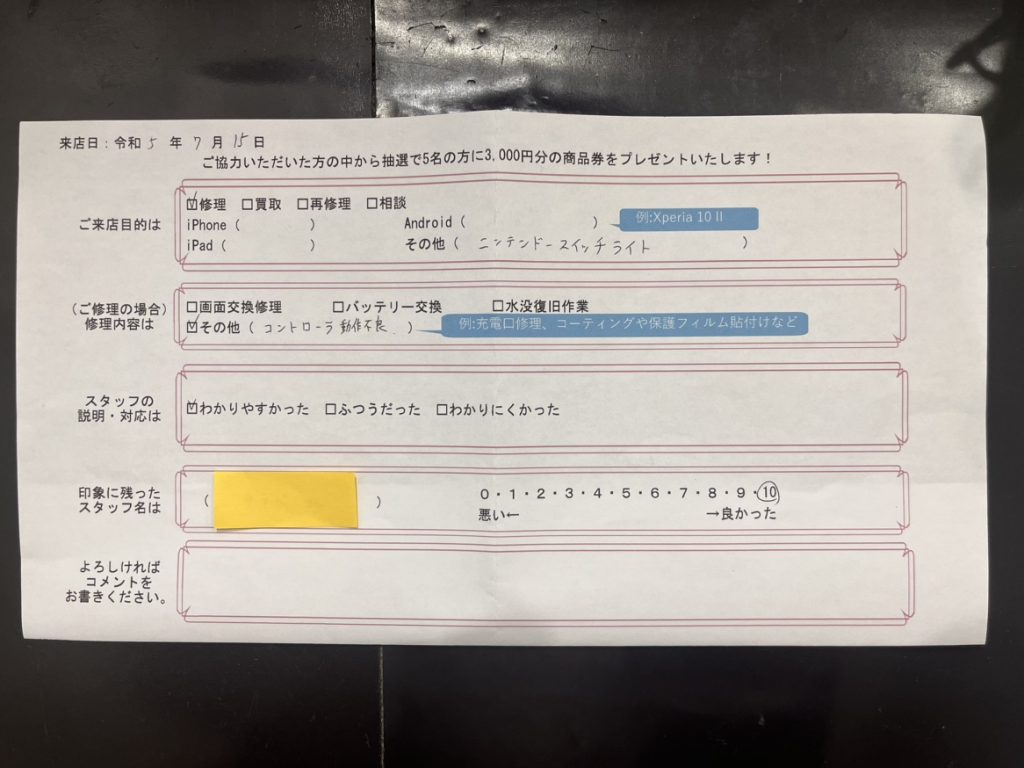 来店修理の流れ