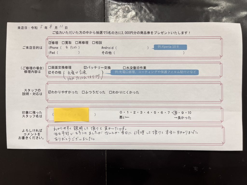 わかりやすく説明して頂けて良かったです。 当日予約で持ち込みましたがなんとか当日に修理して頂けて本当に助かりました。 ありがとうございました。