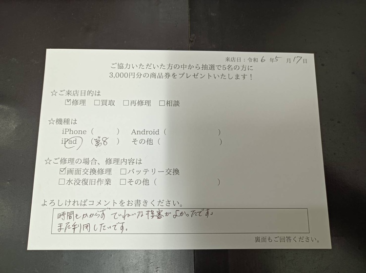 「 時間もかからず ていねいな接客がよかったです。また利用したいです。」