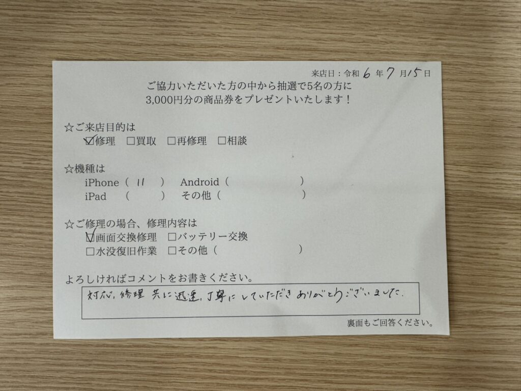 iPhone 11 画面交換修理のご依頼を頂きました。