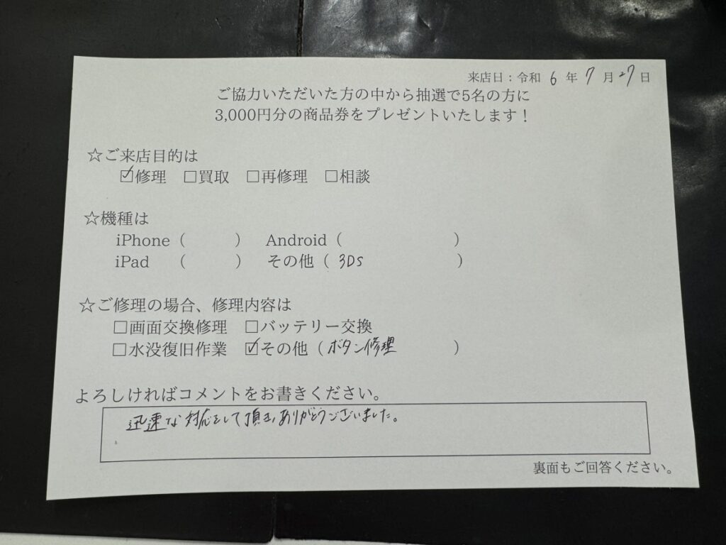 3DS LL スライドパッドの交換をご依頼頂きました