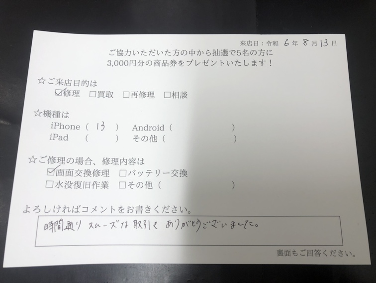iPhone 13 水没して画面が点かないとのことでご依頼頂きました。