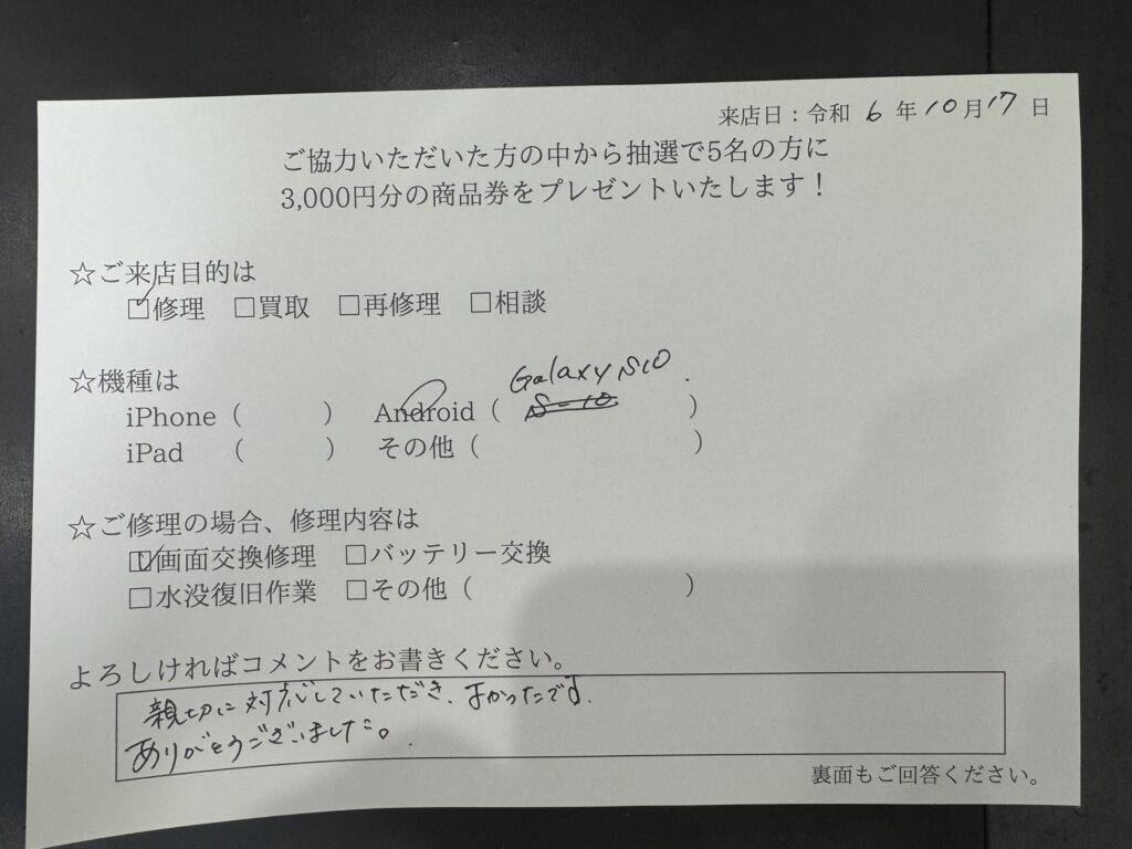「親切に対応していただき、よかったです。 ありがとうございました。」