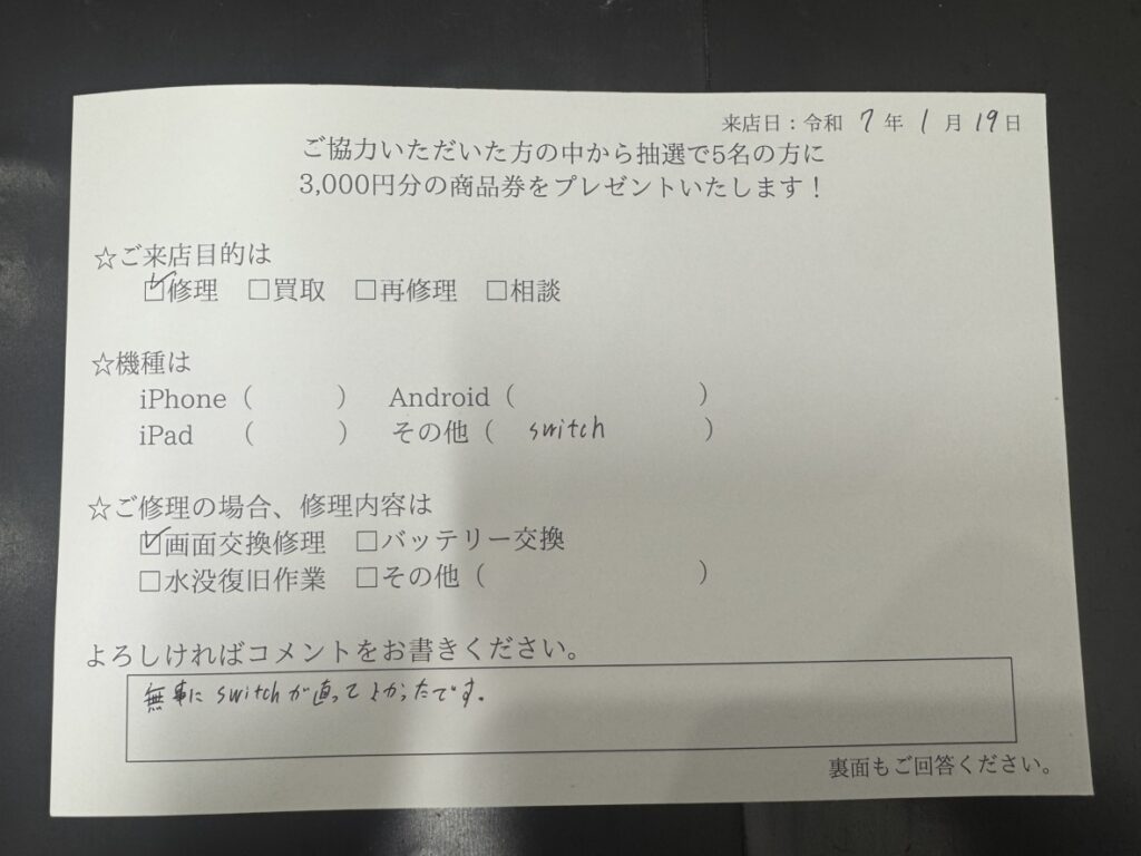 Nintendo Switchの液晶画面の交換をご依頼頂きました!