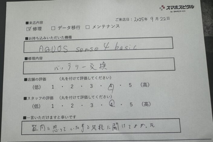 AQUOS sense4 basicのバッテリー交換をご依頼頂きました!