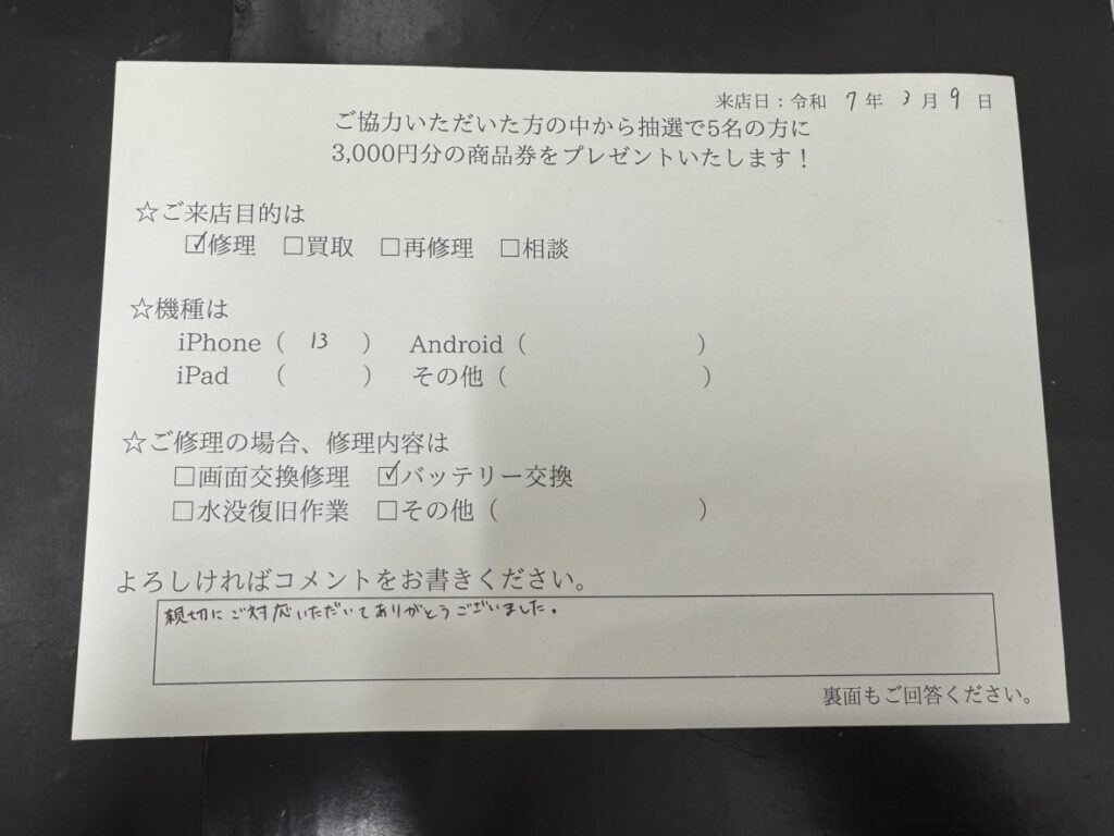 「親切にご対応いただいてありがとうございました。」