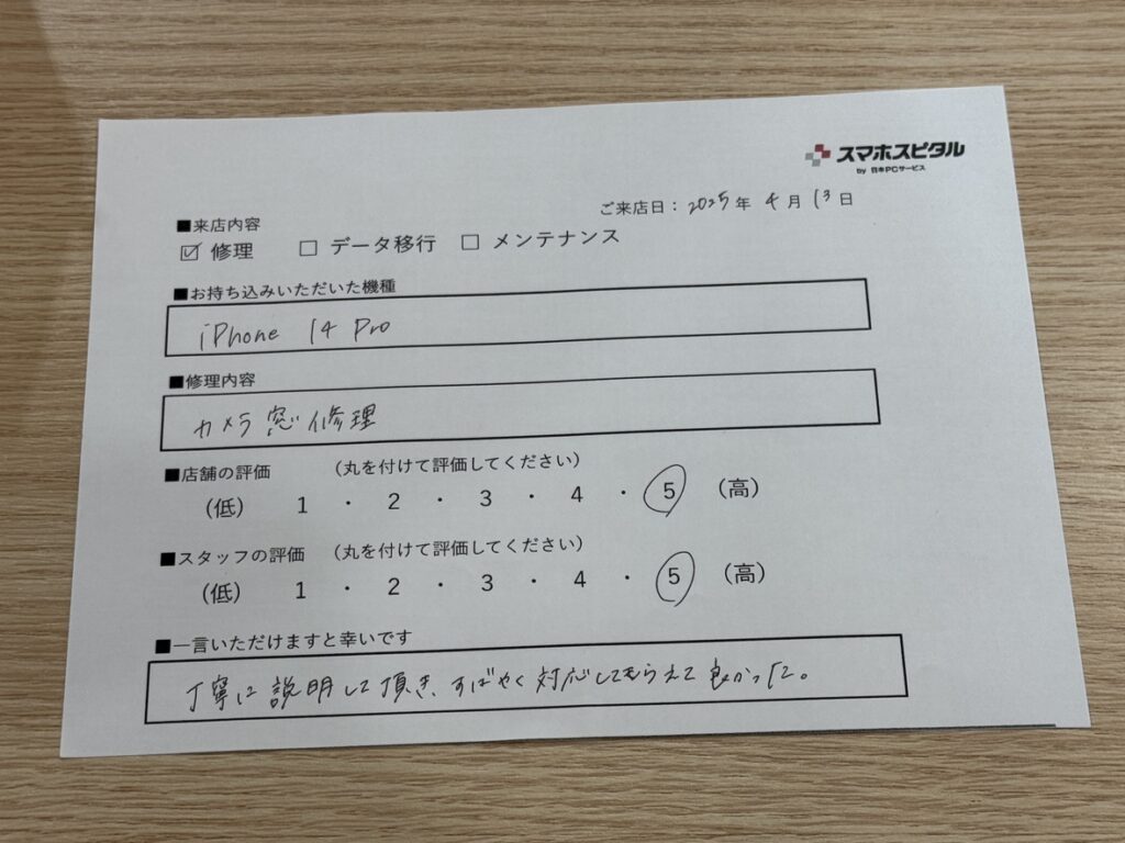iPhone 14 Proの望遠カメラレンズの交換をご依頼頂きました