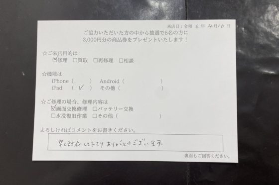 弊社の修理サービスをご利用いただいきましたお客様の声です。