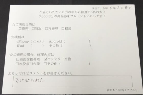 iPhone 12mini のバッテリー交換をご依頼頂きました。