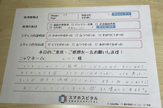 弊社の修理サービスをご利用いただいきましたお客様の声です。