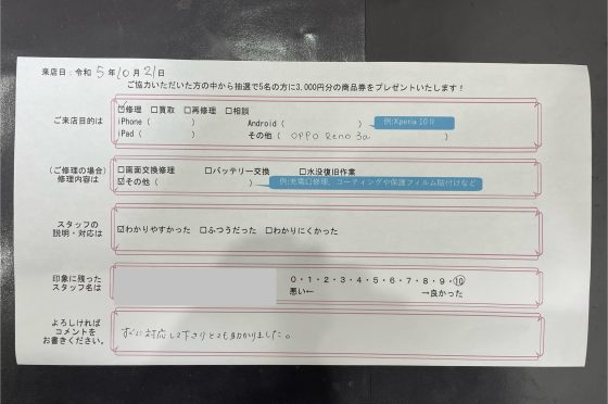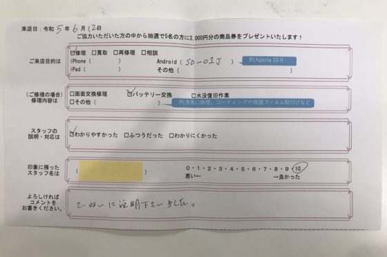 弊社の修理サービスをご利用いただいきましたお客様の声です。