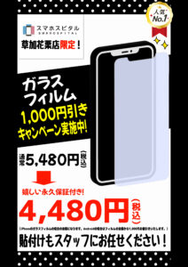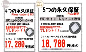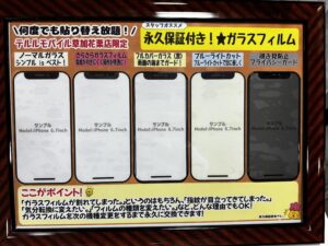 実は当店でガラスフィルムをご購入いただくと次回の機種変更時まで永久にガラスフィルムを何度でも無料で交換出来ます!