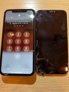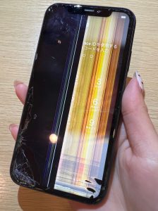 本日2件目にお預かりしたのはiphone11の重度の画面交換です。