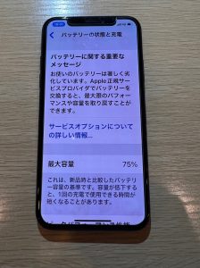 今回のiphoneXは最大容量が75%と表示されています。