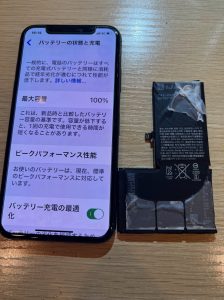 今回のiphoneXは購入から約3年経っていますが、一度もバッテリー交換はしていないとのことでした。