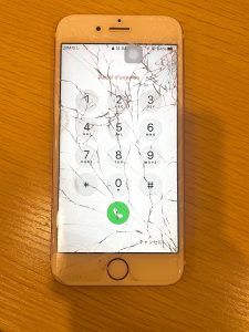 ご来店時の状態としまして、落とした衝撃により画面全体がバキバキに割れていました。