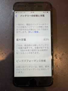 ご覧のようにバッテリーそのものが劣化し、最大容量が83%になってしまっています。