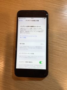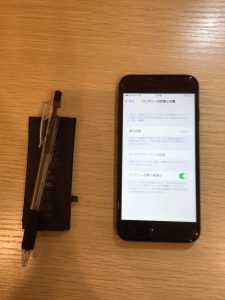 ですが、iPhone8のバッテリー交換をされる方の多くは最大容量が75%ぐらいになってからお越しになるので少し意外といった印象ですね。
