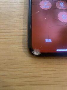 左下のコーナーがヒビが入り白くなっているのが見ますでしょうか⁈