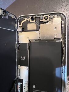 では今回お預かりしたiPhone13の修理をご紹介いたします。