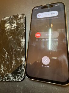 大東市御領 より! iPhone14pro 画面割れ