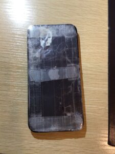 元々背面が割れていてテープでしか保護していないとのことでした。