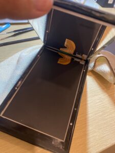慎重に取り外し、タッチパネルと液晶を分離させます。