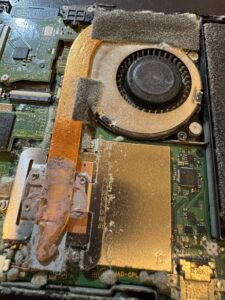 CPU付近などの溝には多くのホコリが溜まっており、内容物によっては基板を傷つけます。