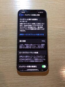 こちらは今回お預かりしたiPhone13のバッテリー最大容量です。
