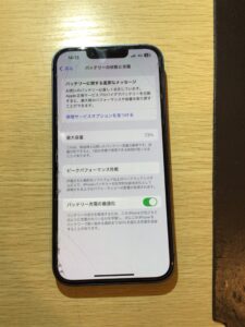 例えば、今回お預かりしたiPhone13は最大容量が73%です。