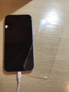 今回お預かりしたiPhone13は画面の保護フィルムがかなり