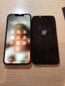 【 門真市城垣町 よりご来店 】 iPhone14 重度の画面損傷