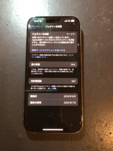さて、今回お預かりしたのはiPhone15Proのバッテリー交換です。