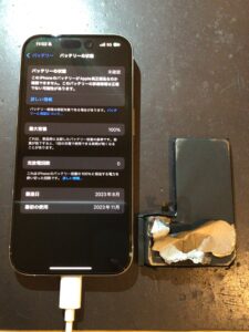 【 東大阪市加納 よりご来店 】iPhone15Pro バッテリーが膨張?!