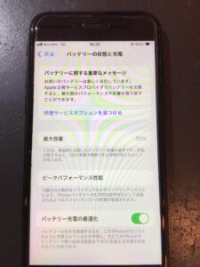 なんとバッテリーの最大容量を確認したところ51%とかなり劣化が