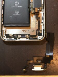 今回は充電口側のマイクが故障していたので、充電口交換にて対応させていただきました。