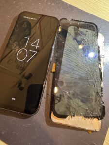 しかし、思いっきり道で落としてしまったようで、画面はバキバキに・・・