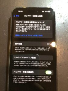 そして今回お預かりしたiPhone14Proの最大容量は76%ですが、