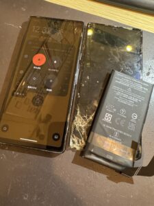 バッテリー膨張だけではなく、画面割れも起こっておりました。