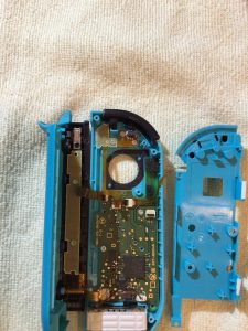 このように両パーツ分解し、新しいアナログスティックを接続することで