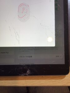 iPadの状態を確認しますと、特にホームボタン付近の割れが酷く