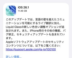 重要な不具合の修正とセキュリティアップデート 「 iOS26.1 」 とは
