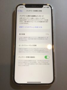 最大容量は77%とかなり劣化が進行している状態です。
