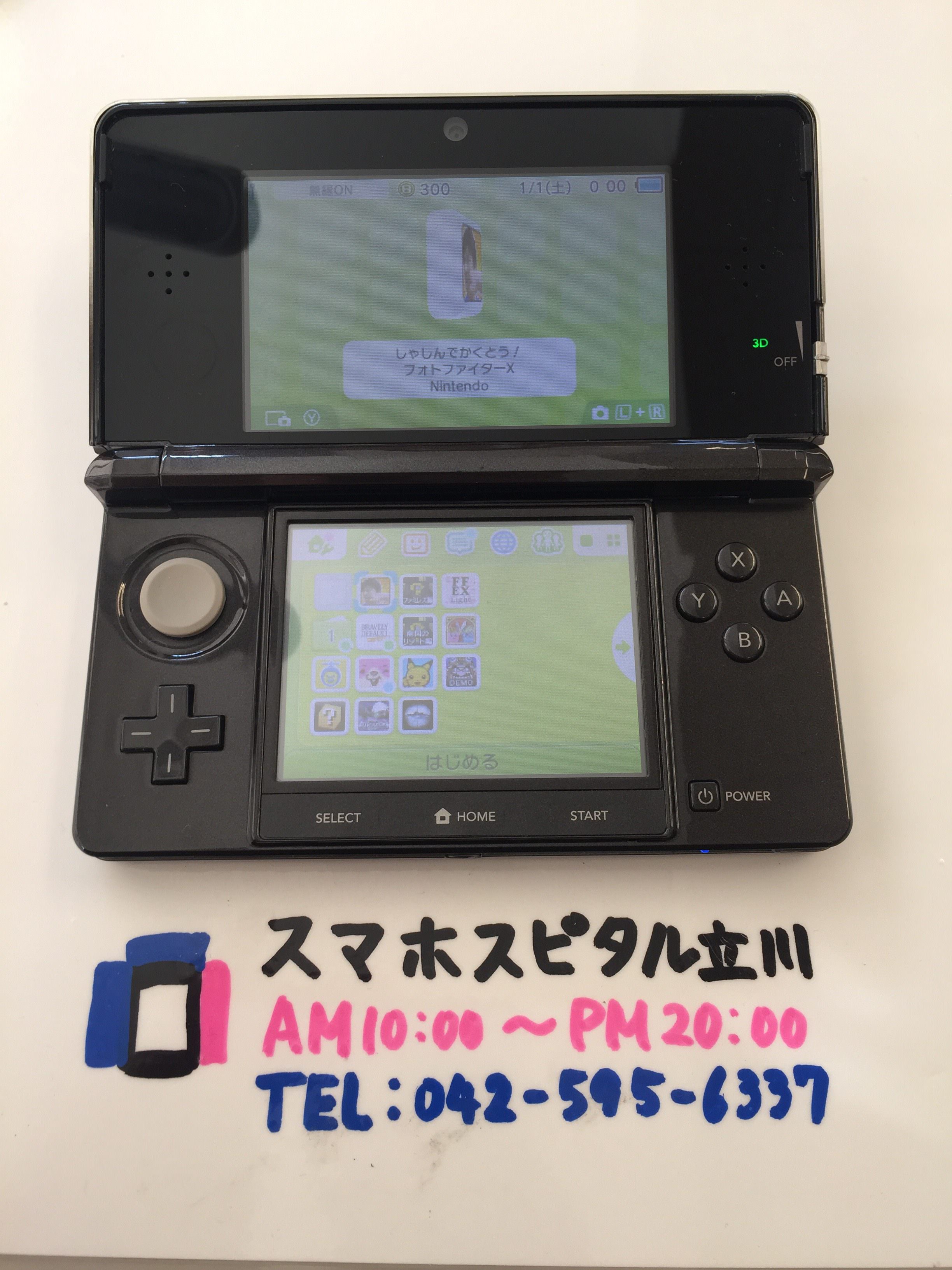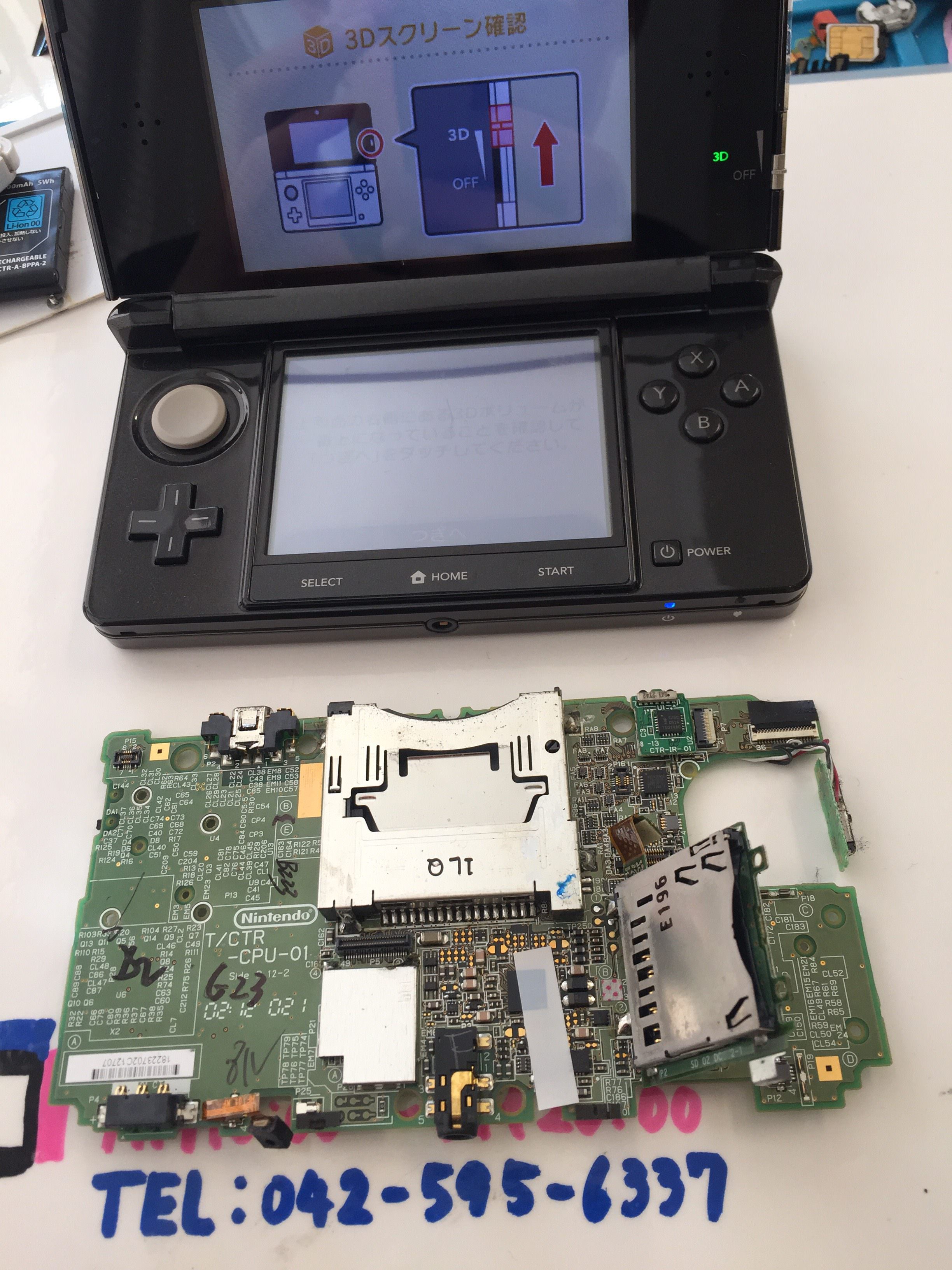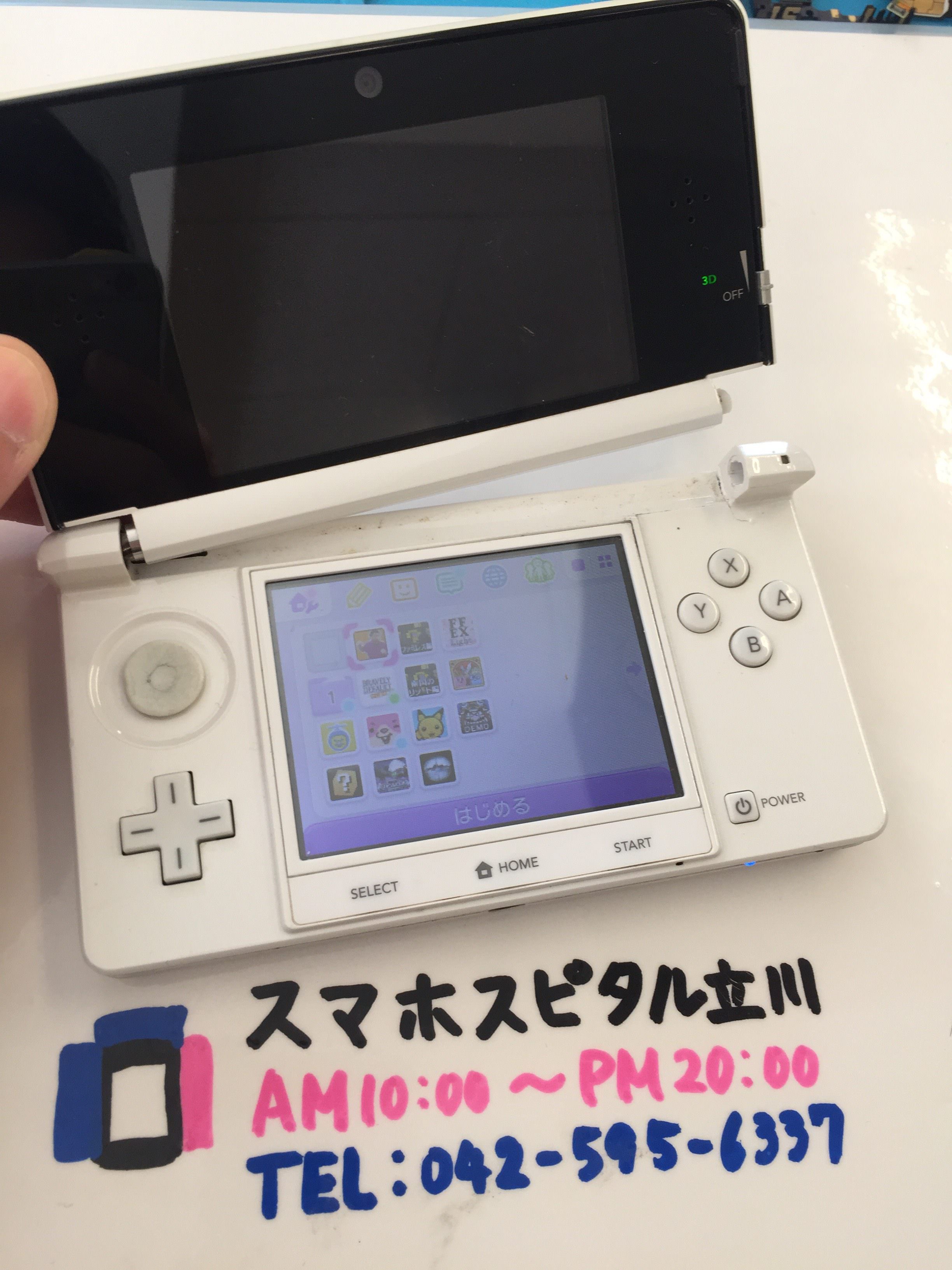 3DSのフレーム破損により上画面が映らなくなってしまい、下画面だけで動いている状況でした。