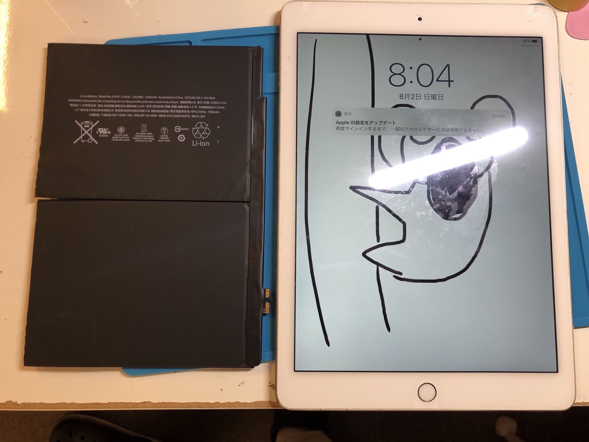 【iPad Air2】100%なので充電しながらじゃないと電源が落ちてしまう……。バッテリー劣化の可能性大です!!⚠⚠